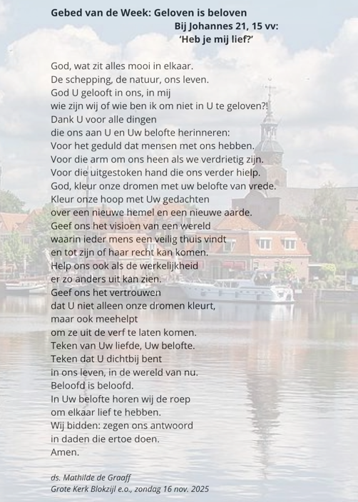 ![]() Pastoraat betekent: ‘Omzien naar elkaar’. Dat proberen we als Protestantse Kerk in Blokzijl en omstreken ofwel voor iedereen. Ben je bezig met vragen rond leven & geloven. Met wat het leven voor je betekent, waarom gebeurtenissen op je pad komen en hoe je daarmee om kunt gaan? Onze levens zijn voortdurend in beweging, er gebeurt van alles. Sommige gebeurtenissen zijn geweldig, terwijl andere je juist uit evenwicht brengen. Het kan gaan over van alles: leven, ziekte en dood, verdriet en pijn, angst, vreugde en boosheid. Hoe kan geloof van betekenis zijn? Zit je er misschien even doorheen of heb je behoefte aan een goed gesprek of gewoon een luisterend oor? Of misschien wil je gewoon es even praten of kennismaken…… ik loop graag een eindje met je op. Laat maar weten (bellen, mailen, langskomen) en voel je daartoe uitgenodigd. ds. Mathilde de Graaff de Kegge 2, Blokzijl E.: dominee@pknblokzijl.nl M.: 06-22000087 |