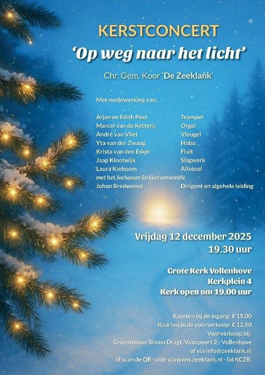 ‘OP WEG NAAR HET LICHT’ Kerstconcert door Chr. Gem. koor ‘De Zeeklank’