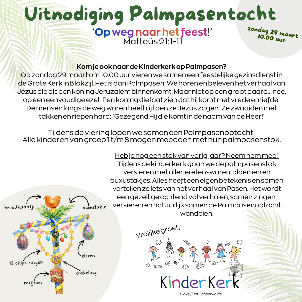 Kom allemaal! 29 maart 10.00 uur